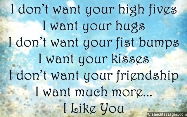 13) I can go on pretending that I am just your friend, but that’s not how I want our fate to end. I want you to hold me close and hug me tightly, I want you to whisper sweet nothings in my ears softly. I want you to charm me night and day… I like you too, is what I want you to say.