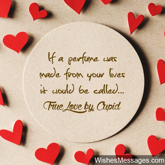 1) If a perfume was made from your lives, it would be called True Love by Cupid. Congratulations on your engagement.