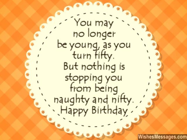 16) You may no longer be young as you turn fifty. But nothing is stopping you from being naughty and nifty. Happy birthday.