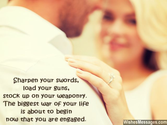 31) Sharpen your swords, load your guns, stock up on your weaponry – the biggest war of your life is about to begin now that you are engaged. Congratulations.